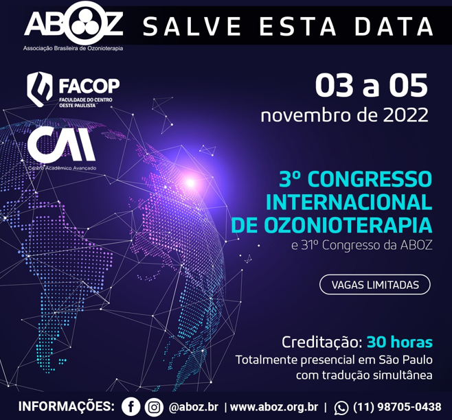 Atualizar os profissionais de saúde para a utilização segura da Ozonioterapia em suas áreas de atuação e intercambio do que se está fazendo em Ozonioterapia no mundo, baseado em conceitos fundamentais e atualização científica.