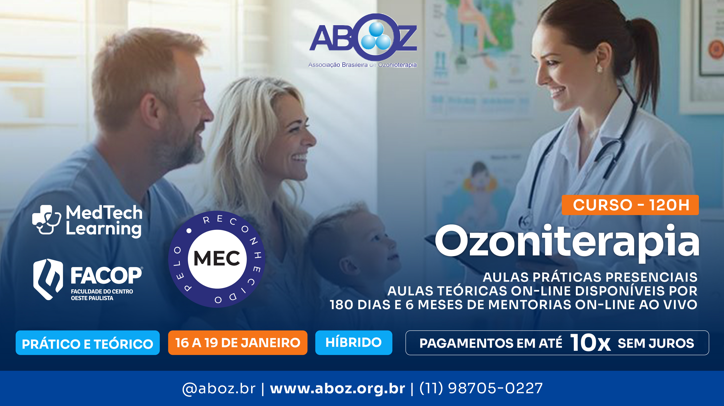 Curso Habilitação em Ozonioterapia 120h - Aulas Práticas de 16 a 19 janeiro 2026