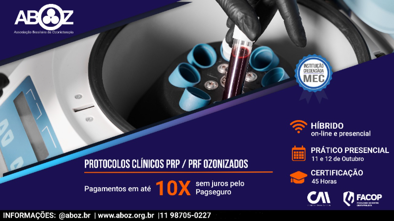 Curso Protocolos Clínicos PRP / PRF Ozonizados - Práticas dias 11 e 12 de outubro 2025
