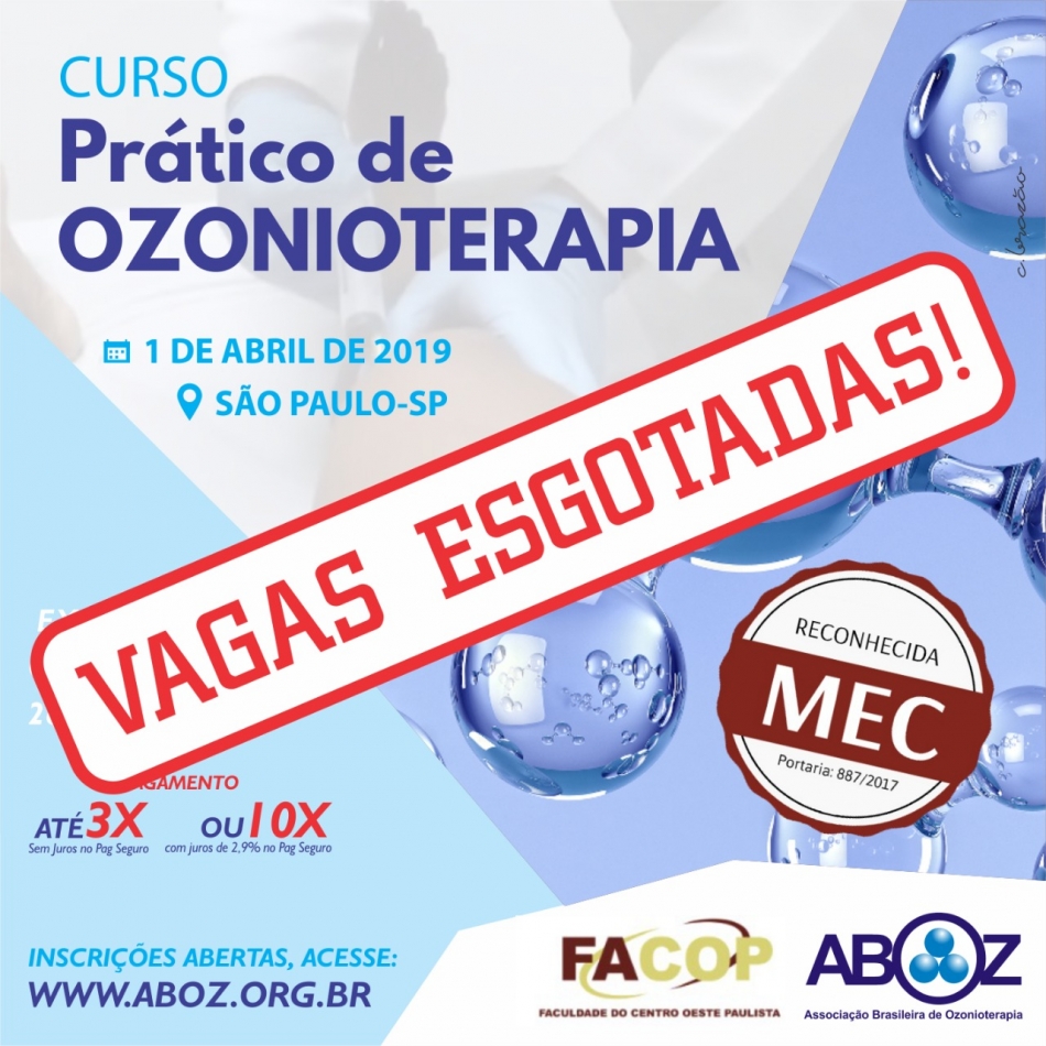 VAGAS ESGOTADAS Estudo em Grupo em Ozonioterapia Com Aulas Práticas Para Profissionais Da Saúde dia 1/4/2019